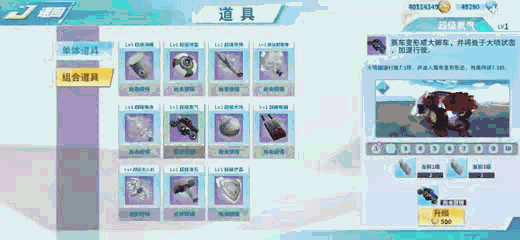合理使用组合道具是制胜的关键所在,另外需要注意的是,组合道具必须要先获得后组合道具才能在比赛中进行使用,如果没有获得是无法在道具赛中使用的呢!