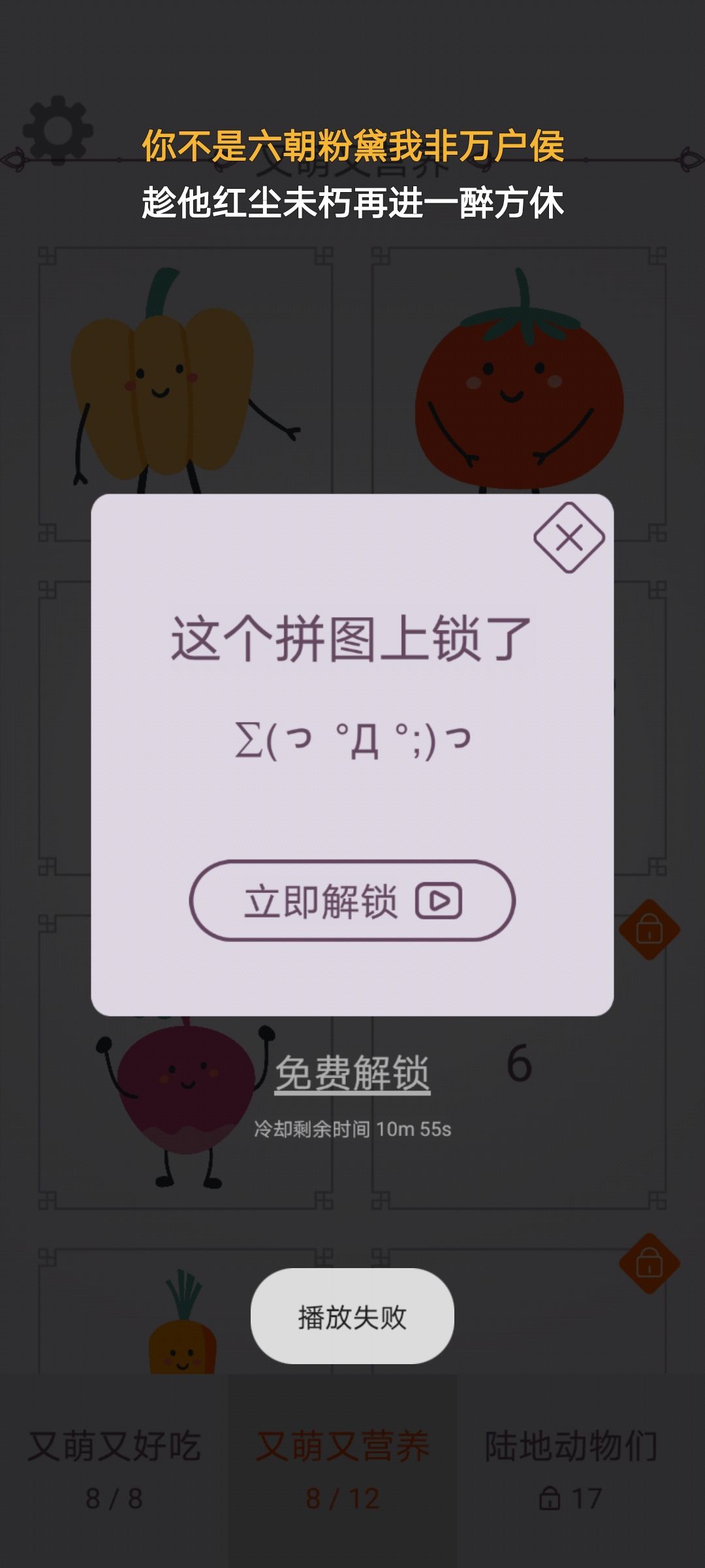 视频播放不了鸭₍•ʚ•₎•ʚ•₎•ʚ•₎,不看广告就没法解锁新的拼图,不解锁新的拼图就没法提前打下一关