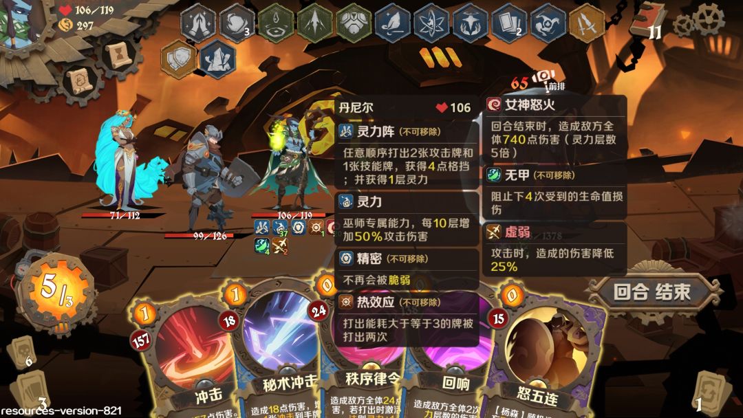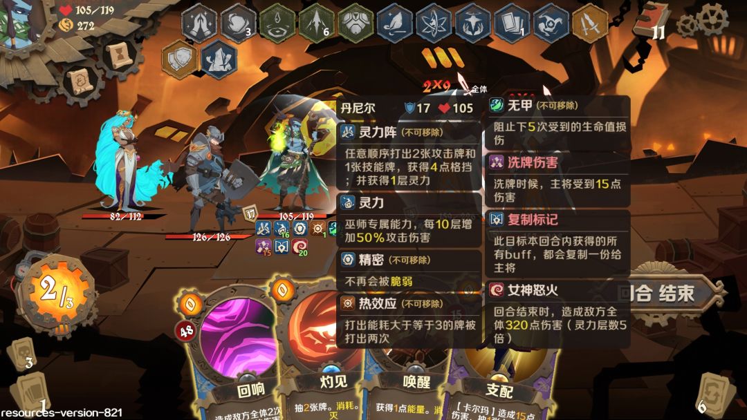 复制标记加热效应一张3费牌打4次(那个5次不知道怎么算的) 天赋的第一回合无甲加4次无甲 无敌5个回合!