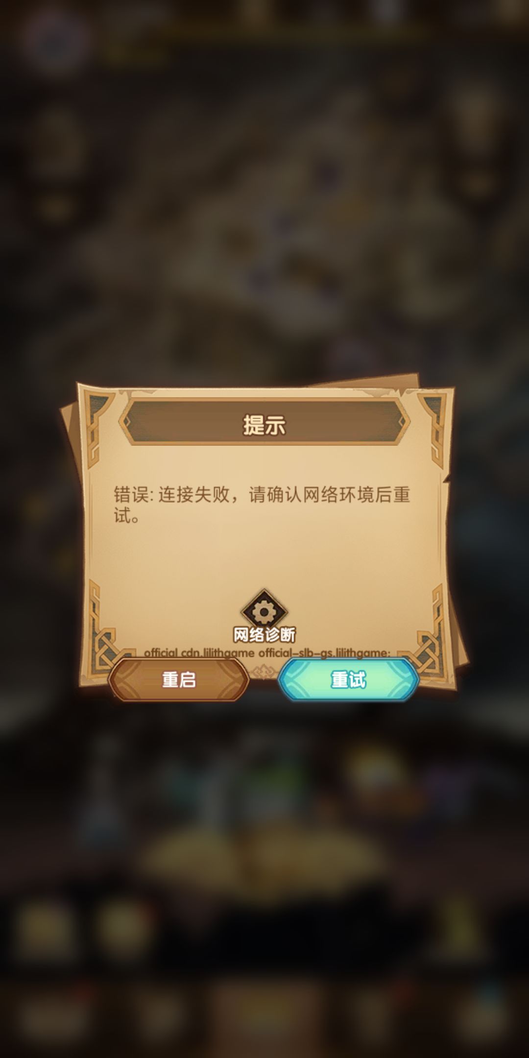 有大概一年没玩了 前两天想起了这游戏又下载了,游戏里面的资源包也下载了,就一直出现这种情况,我这网速玩其他游戏都没问题,就打开剑与远征就一直连接失败,有时候游戏进去了然后点个好友领点爱心就又连接失败,点邮箱也是连接失败,点哪里就连接失败,不懂就问,这游戏是不是不用进游戏就不会连接失败了?