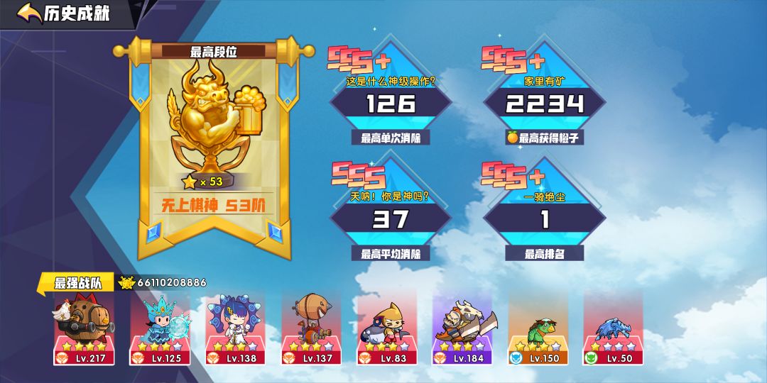最近bug有点多,图一是我不经意打的,成就那里有个红点,我以为单消破纪录了,点进来看发现没变化啊,结果一看最强战队怎么变了,600亿,然后新英雄战力真的算进最终战力的,我面我想终极击晕(攻速)能打600亿是不是终极伤害能破千亿,然后昨晚打到几阶(40多阶)不记得了,就是刷新减半那里第一波拿券就打了80卷,我决定尝试一下千亿计划,怒刷700体,终于出了满意的终极伤害(爆照,86,小美,女巫),图我忘记截图了,这个组合我以为一定能破纪录的,结果最后除了女巫是白板(消除太烂需要转移经验),其他的都是4星满形态(爆炒,拆迁,阿布,小美,喵斯特,侦探,86,女巫)才打了650亿,是哪里出了问题嘛,白给700体呢,对了趁现在大家赶紧去刷成就啊,随随便便破百亿,沙沙水的