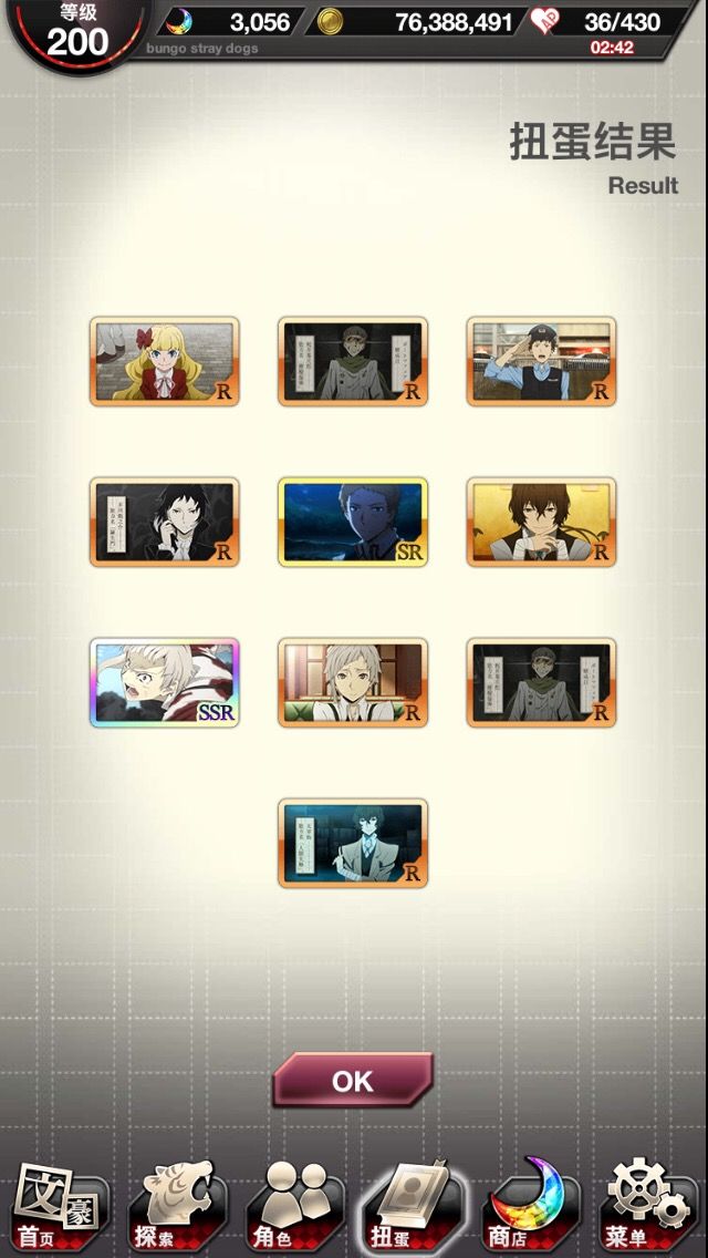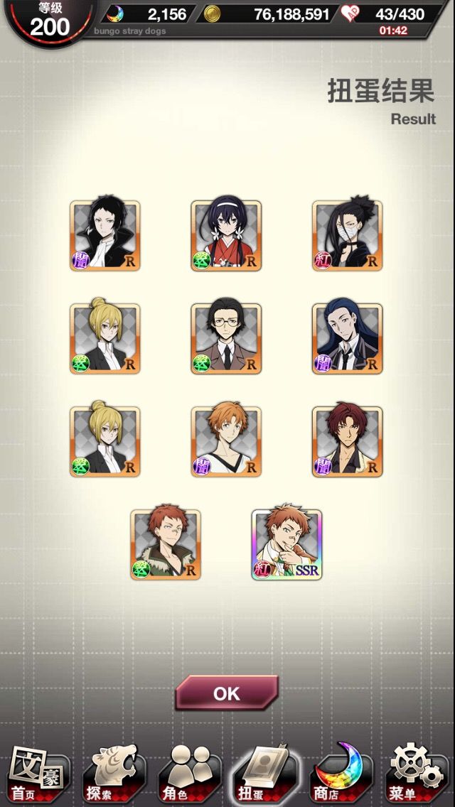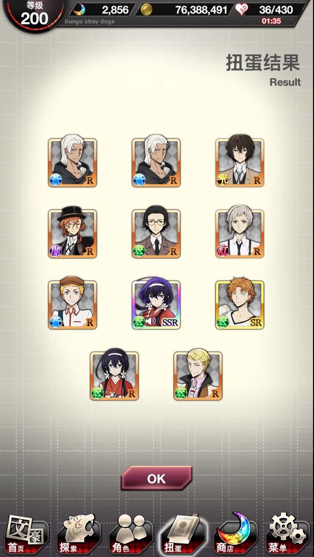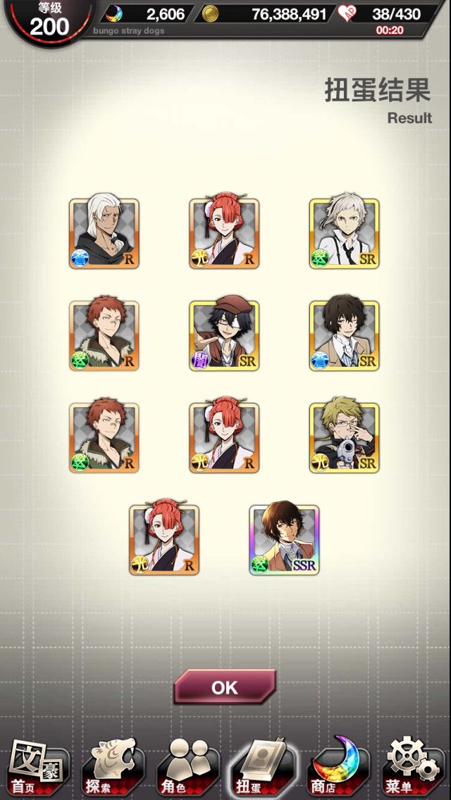 好家伙我最起码两个号加起来都有5、6个立原了,这池子里怕是只有立原了。还有这卡歪的就离谱。梦回三个号抽运动会安吾时的惨状(最惨的是我两个号都没抽到森先生的sr,概率还那么大就离谱,这假概率我也是佛(服)了)概率感觉好像就是从运动会开始就变成这样了,以前都没那么严重的吧(个人感觉)