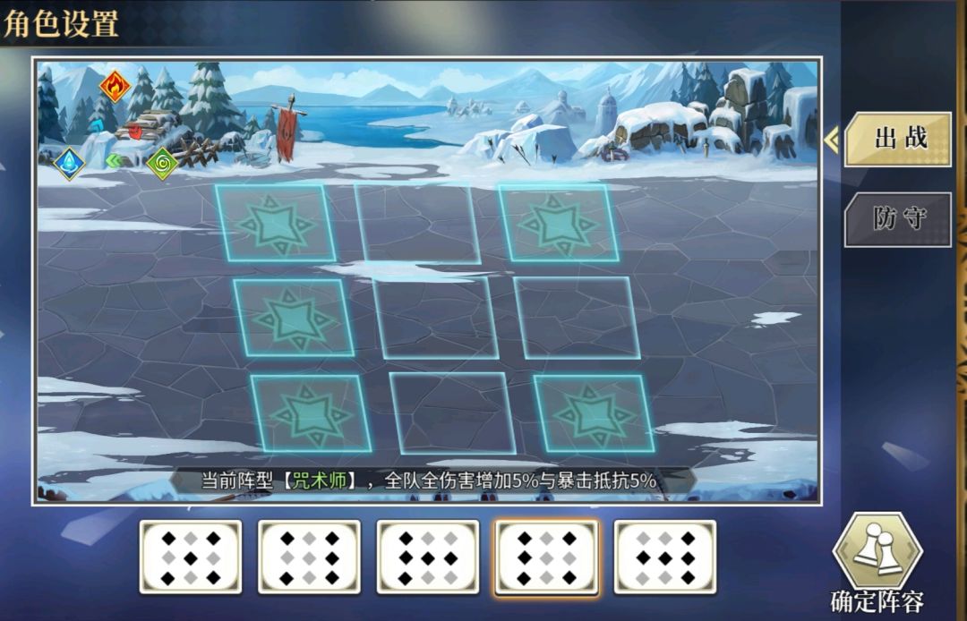 小总结:阵容一定要有风属性 而且必须放前排 防止水属性冲锋压缩阵型