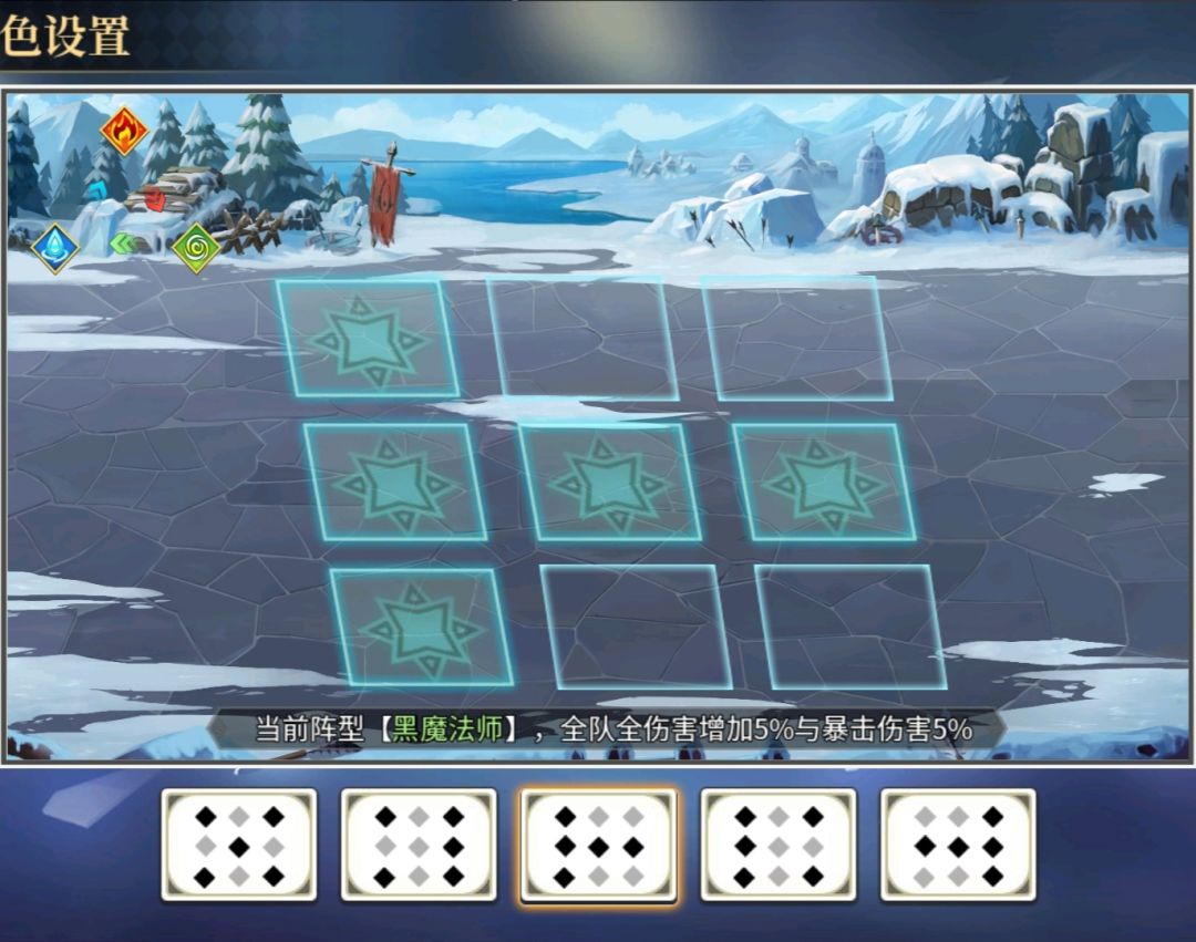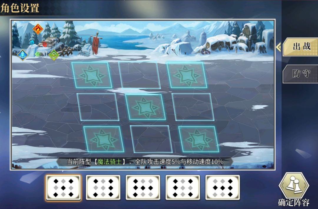 5种阵型各自有各自的buff设定 但就实战中 最常用为给魔法师 和 魔法骑士阵容 还有种特殊阵容 有待实验就是狂战士阵容 (全水属性阵容可以试试) 另外 剩下的二种阵型目前很难试用
