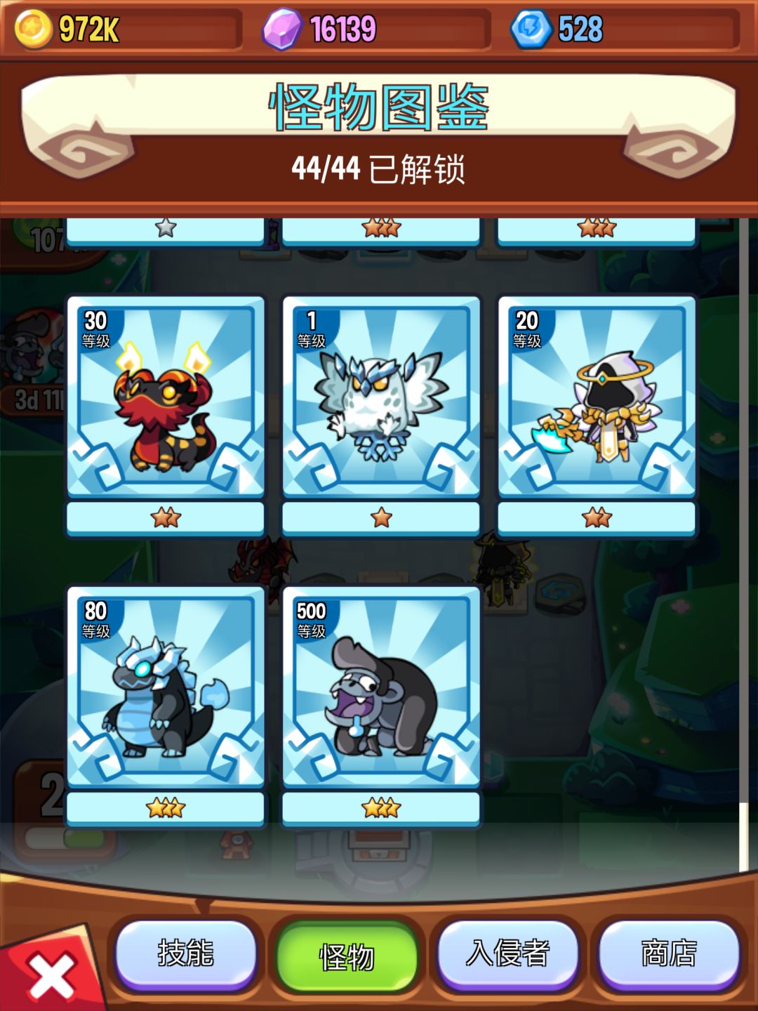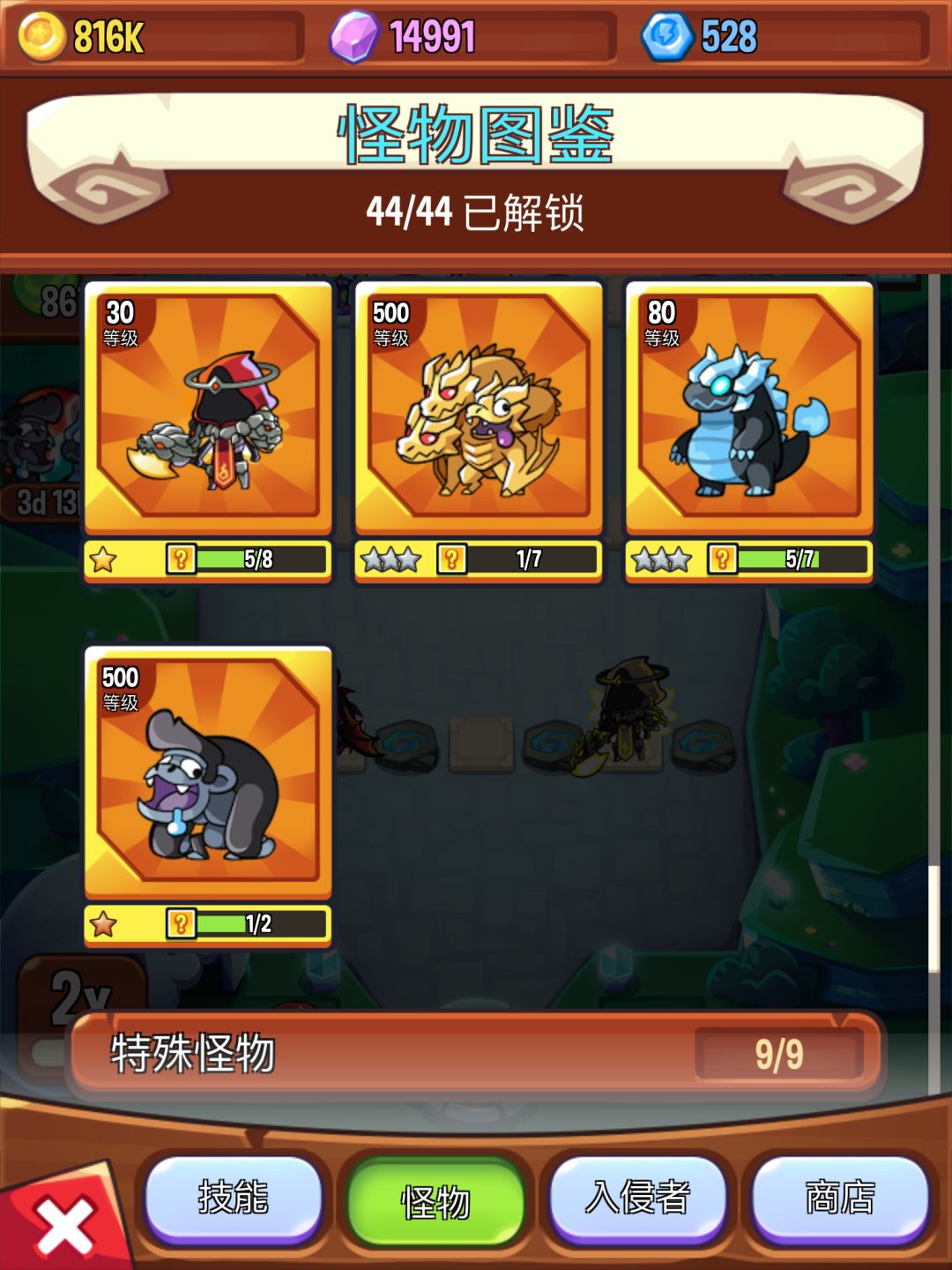 再后来手动卸载更新后,两只原来的传说怪就变成了特殊怪,但星级因数据保留没有变化: