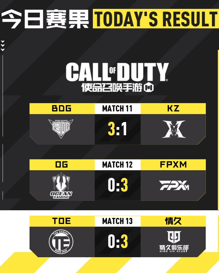 至此,4月9日的比赛已经结束,今日的比赛中,各战队为我们带来许多精彩操作。4月10日,FPXM与情久之间将会展开一场精彩绝伦的“世纪大战”,有趣的是,两支战队都在今日的赛后采访环节隔空放下狠话,看来双方想要战胜对手的信心都是非常充足的!4月10日15:00,锁定使命召唤大师赛常规赛第二周第三日精彩赛事,届时各战队会有哪些表现呢?让我们一起拭目以待吧!