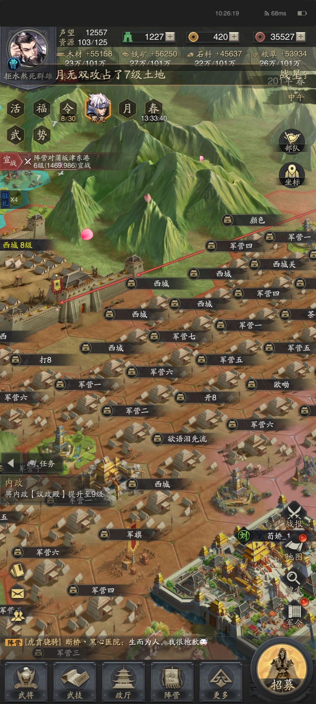 我们翼州2线开战导致我们之前在凉州打下的地方被抢回去了,今天决定在打回去,怎么说要打下翼州一半。西或这边还在互相看着,不知道谁会先发起冲锋。