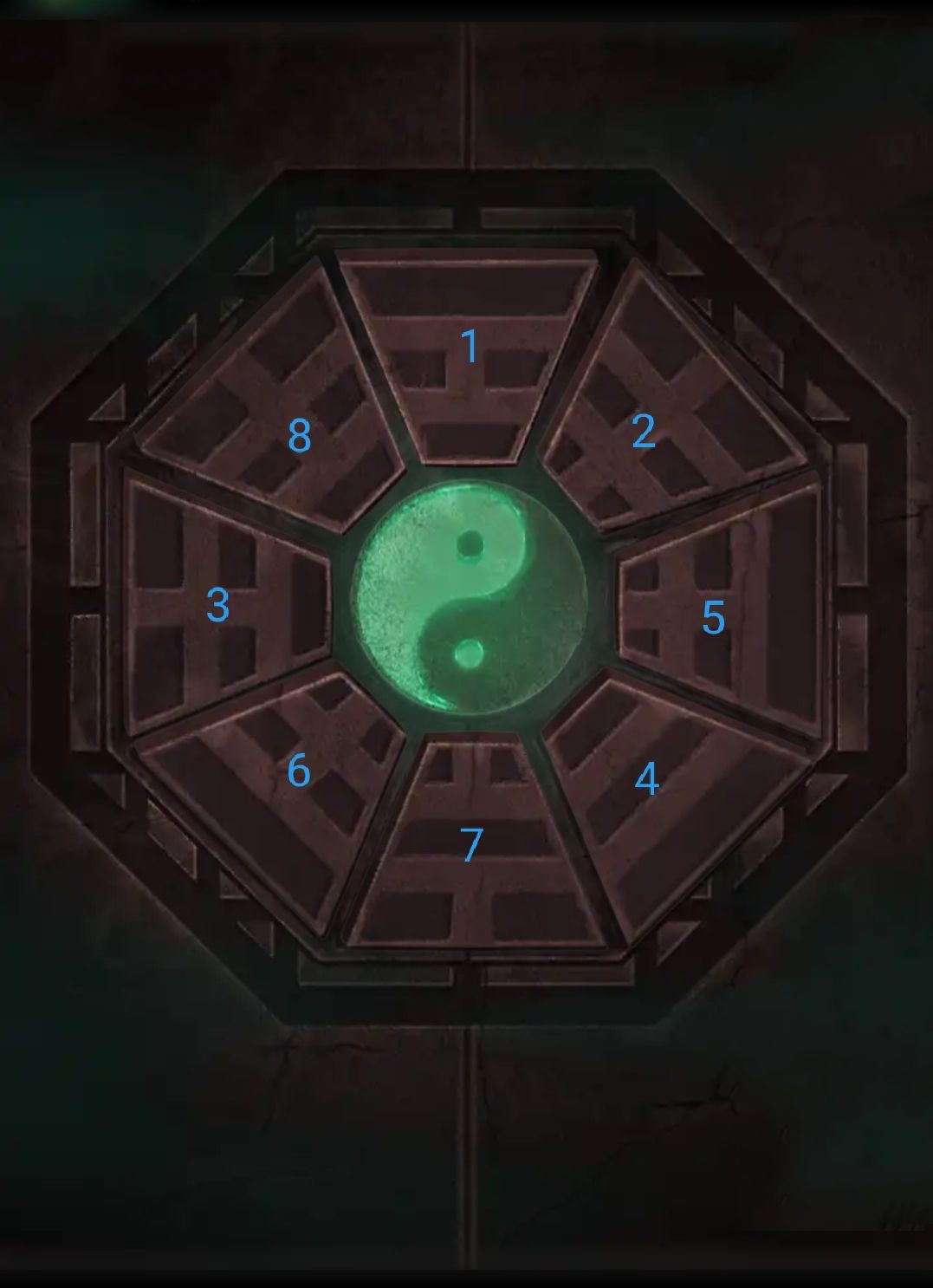 进入卧室,按照⑦柴房宫灯🏮每个面的提示【子☵丑☶午☲申☷亥☰】,将莫琪家⑧架子墙上的机关与八卦图案对应,获得旧合照。
