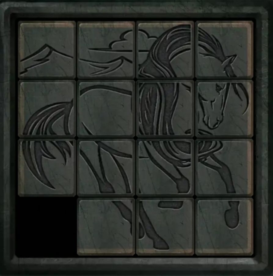 前往⑮庙堂外河边,头罩舀好水后,点击⑯佛堂前的棋盘,根据一旁石碑解谜可得到无面铜人。