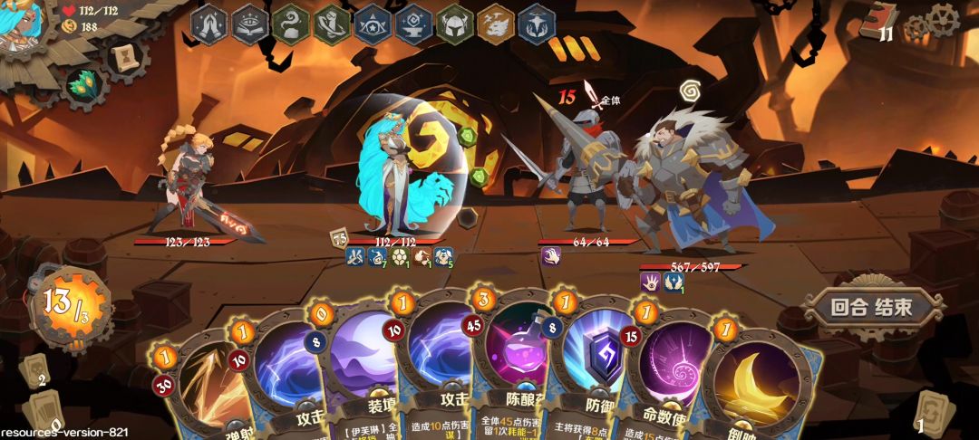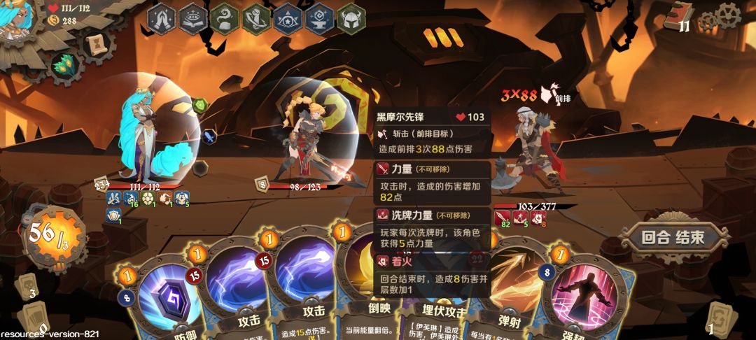 这套成型比较快,基本第二关就能实现开局无限能量结束战斗了。这把我比较霉,第二关了都没拿到几张能用的卡,就靠着命数使然拉强韧,强韧拉倒映和命数使然实现开局无限能量。