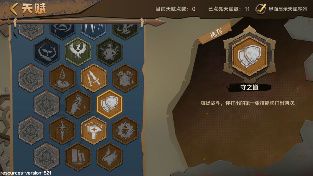 然后天赋中的守之道可以使第一张技能牌双倍如图