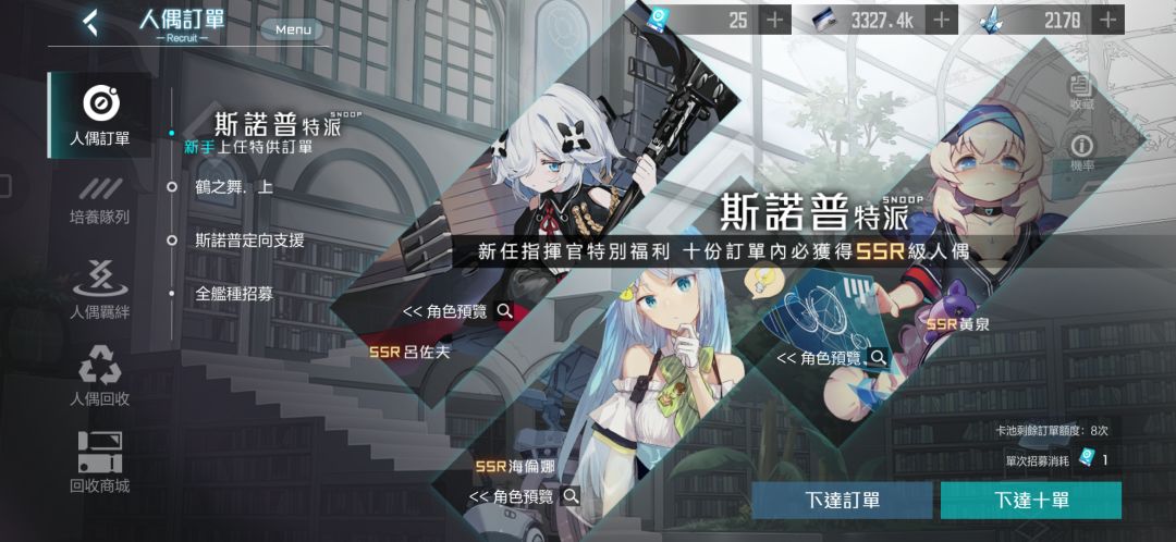 想问问大佬,新手十连,我单抽2发出了海伦娜,剩下8抽还能出ssr吗?