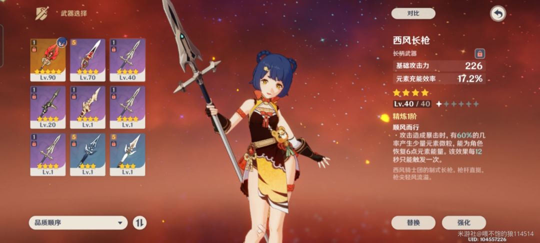 因为班尼特的原因,角斗枪的低白字劣势被掩盖,是一个不错的选择西风长枪可以加快充能循环。但是对班尼特的练度要求高一点