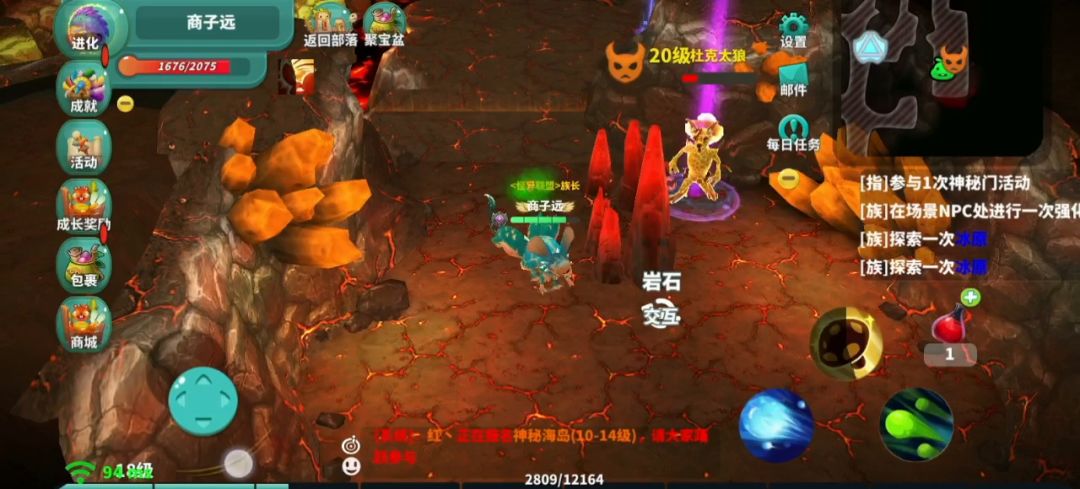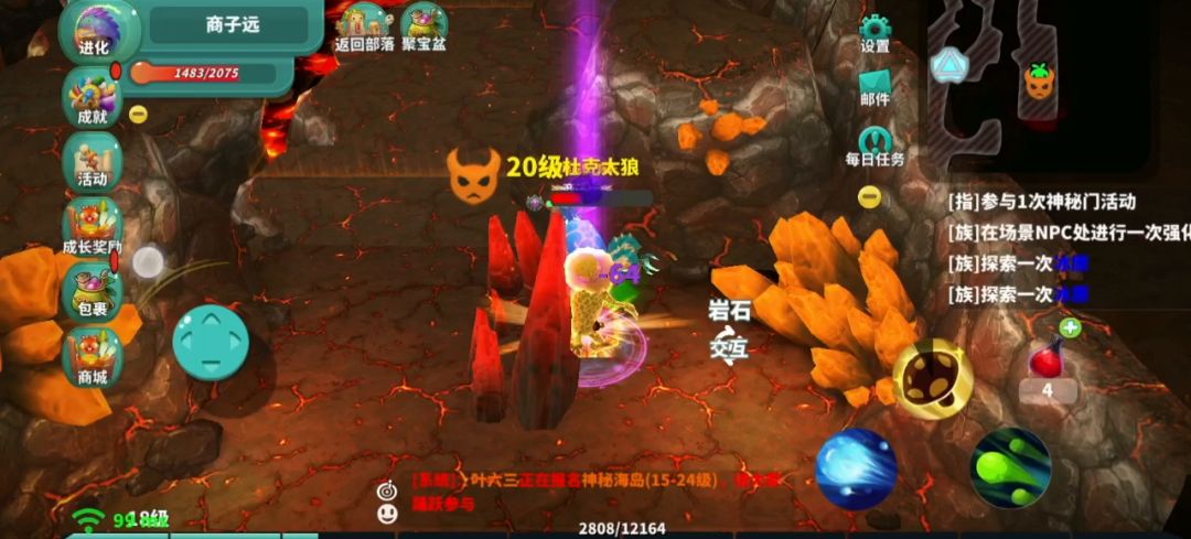3:boss打法,看到两个岩石了没。不要爆破,秦王绕柱宰他!注意的是,这个boss有一个触发的回血量的技能。只有一次,会有两次召唤:1 狼(狼召狼)很烦人的,但是伤害不高。2 跳跳蛙这个比也烦人,攻击加推人,近身。