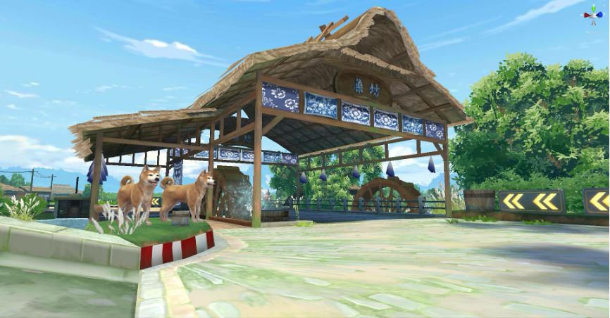 水车吱呀呀转个不停,染坊上面的青花布随风飘荡。忠实的“阿柴”目送着赛车手们疾驰而去。疲惫的心灵可以在春日田园赛道找寻一份惬意与宁静。