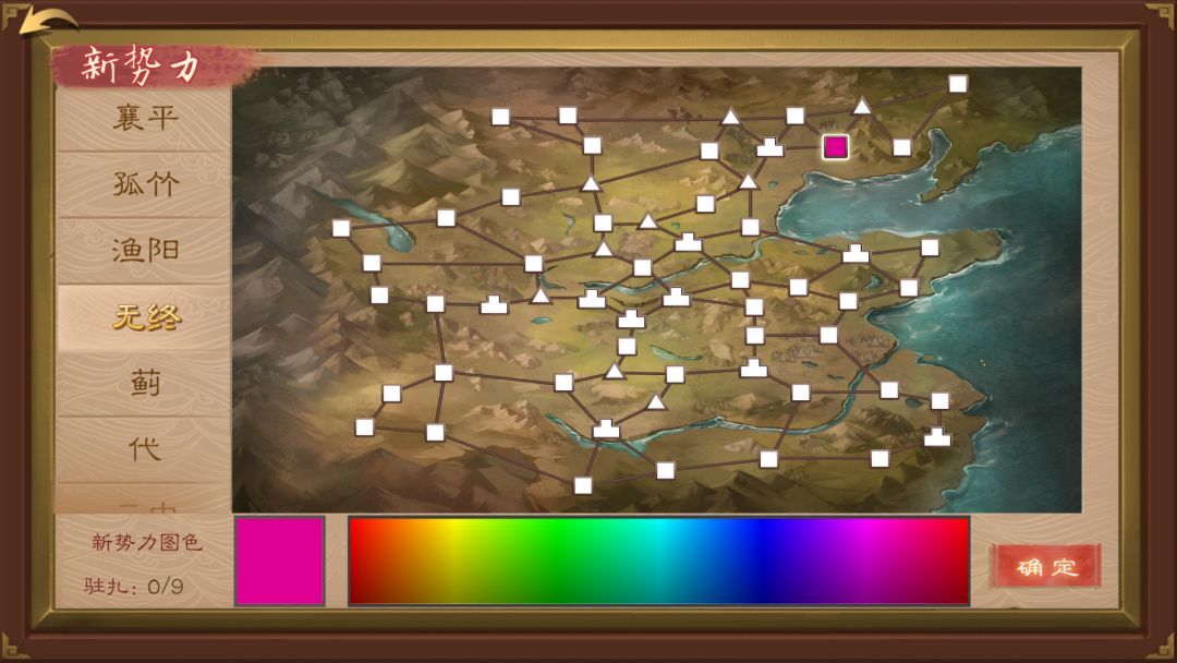然后给这个君主选择一座空城池以及其势力图色。