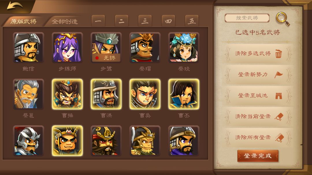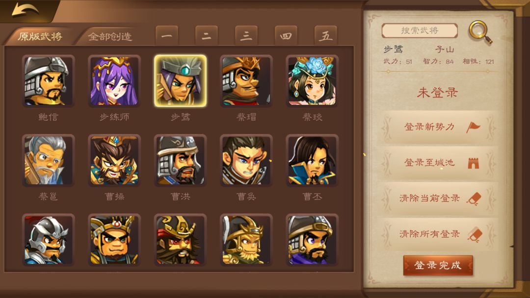 选择一个武将,在右侧点击登录新势力。注意,因为新势力登录的是君主,只能为1个人,所以不能在多选状态中点击登录新势力。另外,若创造武将不足或需要用到三国武将,则可直接调用官方原版武将。