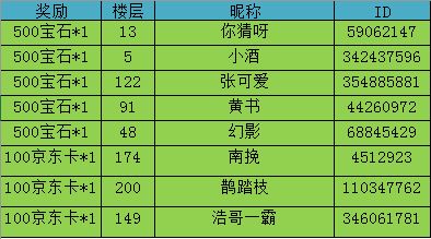部落挑战奖: 从有效回复中随机抽取5名玩家赠送500宝石