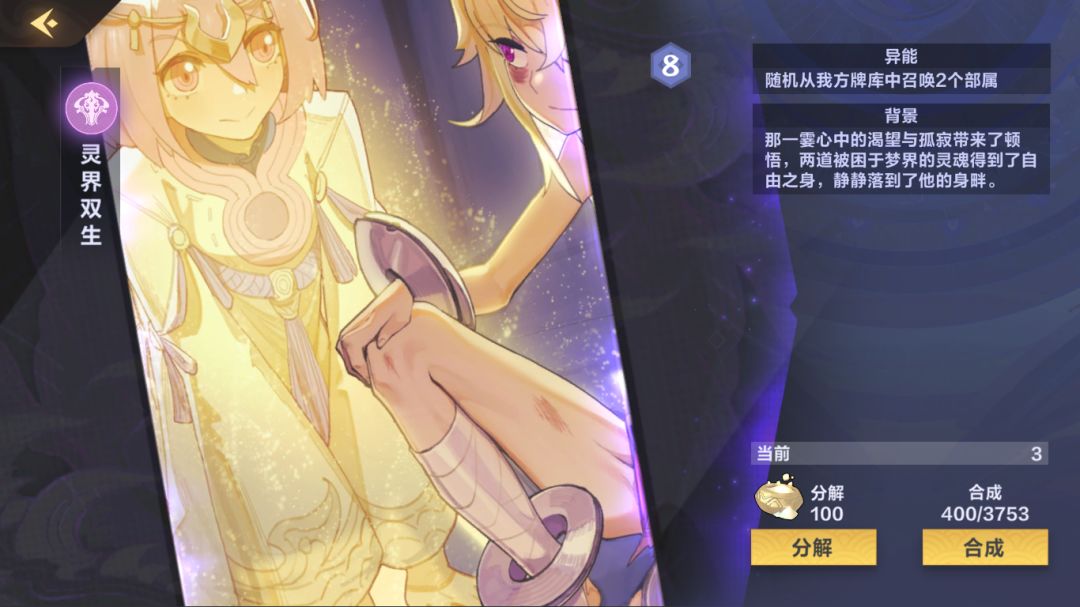 对手3费以下的buff卡和联动卡都可以用这张卡来解掉。我认为这些属于buff卡1费的怒意化身、1费的银蹄圣鹿等,联动卡就是耀灵精兵、耀灵军策士及丹青之灵等。这些卡前期不能让他们把我们怼残血或者让他们刷起来,打断他们的节奏。