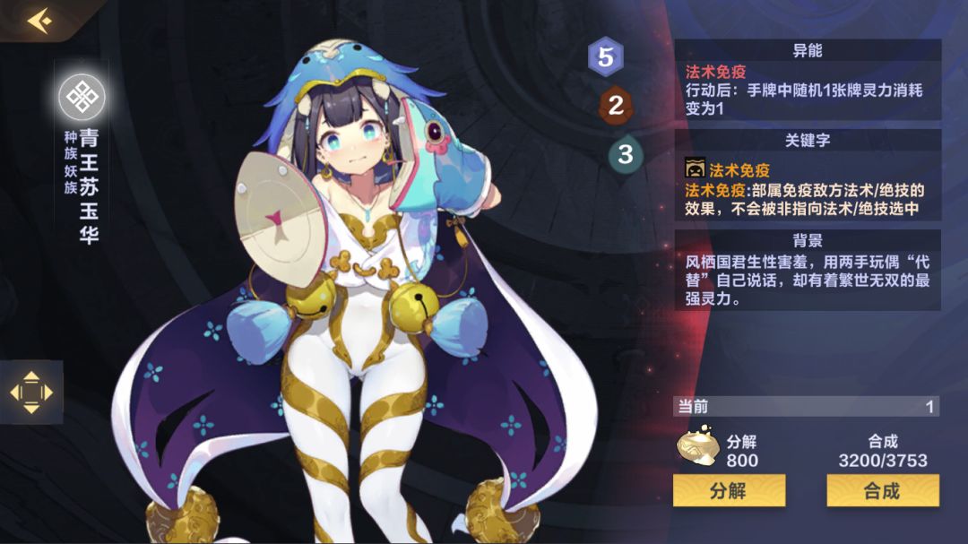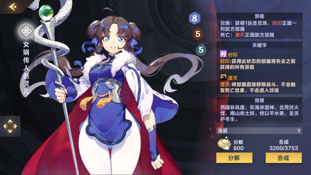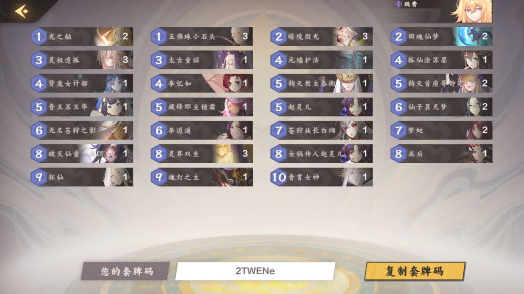 克法术,带上她不再怕手中无牌,给的几种灵珠都可以配合清场。我这套卡组没有什么aoe,所以她需要带满。