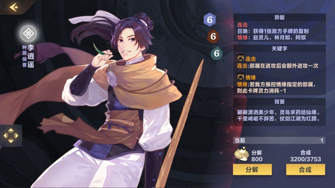 李逍遥能打脸能过牌,召唤出来,对手需要想尽办法去解他。消耗对手脑力,快乐自己。