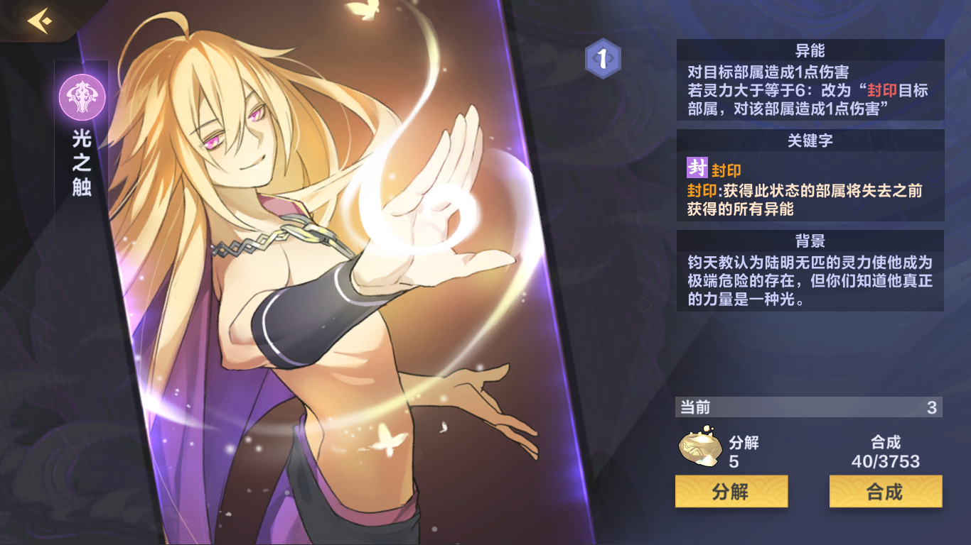 光之触这张卡严格来说不算前期解卡,一般等到6费后去解一些带特殊效果的大哥卡比较实用。