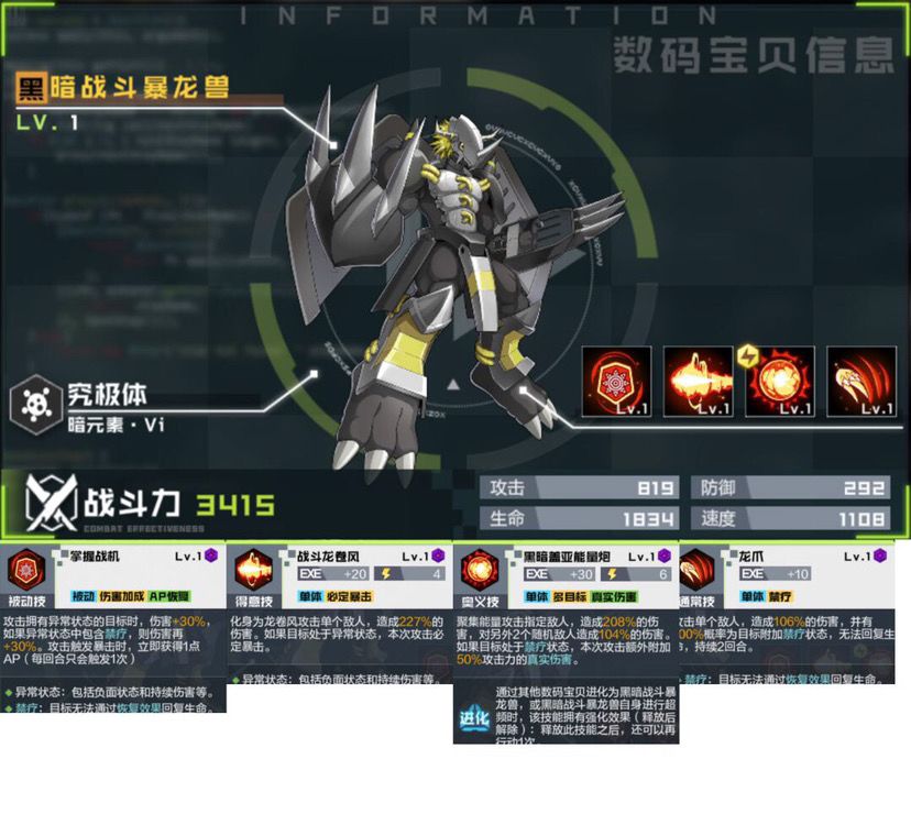 优点:非常具有病毒特色的被动,攻击异常状态敌人增伤30%,如果包含禁疗再增伤30%,直接增伤60%恐怖如斯!战暴才增加30%攻击持续3回合,但是黑战暴可以增伤60%,而且增伤的效果比增加攻击可强得多;被动还有第二个效果——暴击回复Ap,可以更频繁的使用技能;得意技227%的单体伤害,而且对方只要在异常状态必定暴击,目前新世纪唯一一个必定暴击技能;奥义技208%主要目标104%两次要目标,而且处于禁疗的附加50%攻击的真实伤害,#(滑稽)我黑战暴面前没有肉盾。