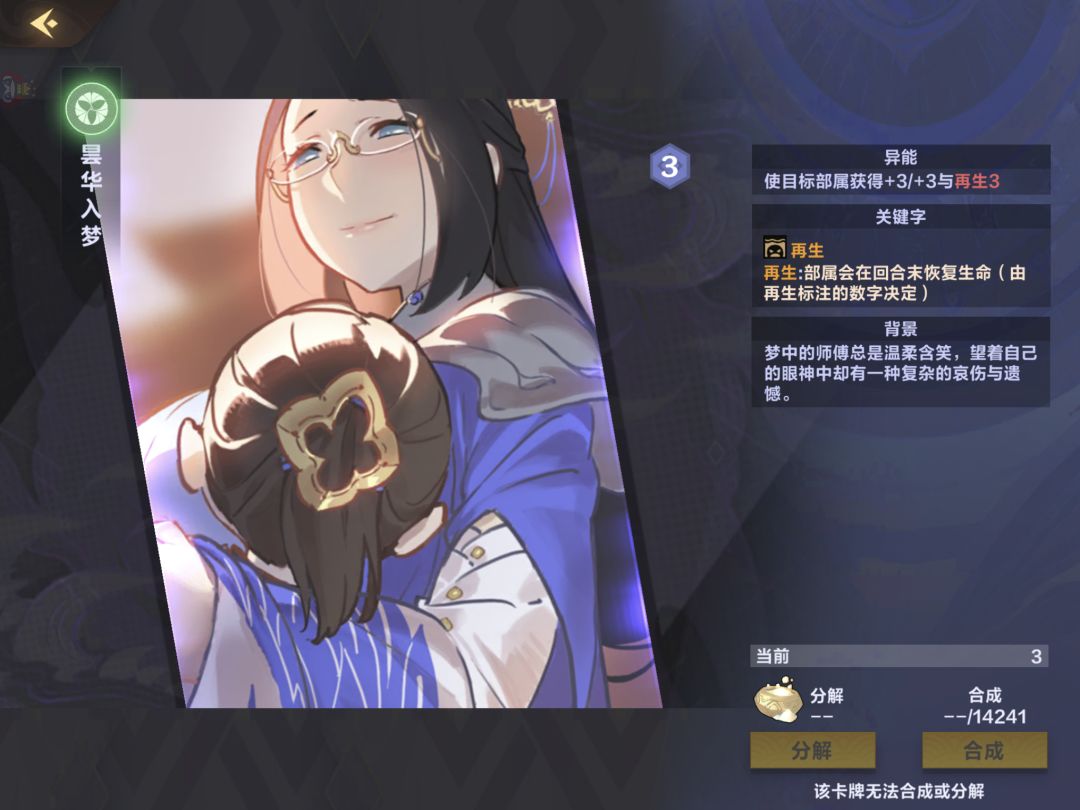 对局思路,开局跟快木差不多思路,拿到尉伏云可就别换走了,就一张。麒麟之怒我们只需要一张,多的完全可以用来打伤害,初期也未必需要留。天麟之息也只需要一个,多的估计你也没处用,有时候给小鹿加了再buff起来,对面解不掉就赢了。昙华入梦能抢到血可以用,能不用就留一个,但是别为了OTK被人打死了。