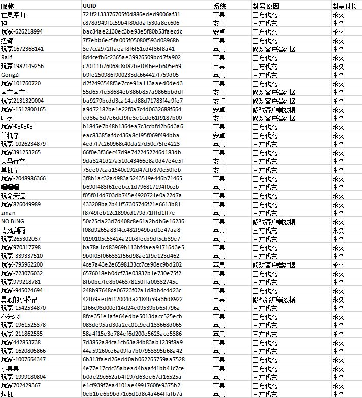 以下是近期部分封号名单