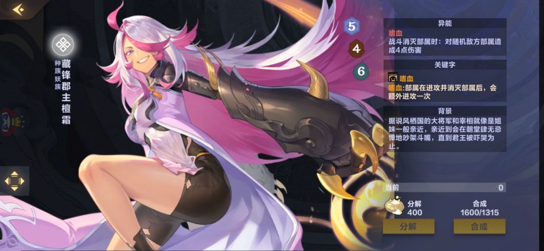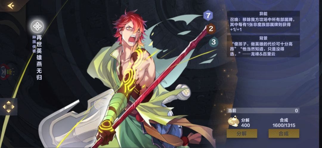 虽然说有奇效但是毕竟六费基本占据一个回合了而且四血究极容易自爆,而且回手以后就很好防备。我除了玩灵都不会优先选择。