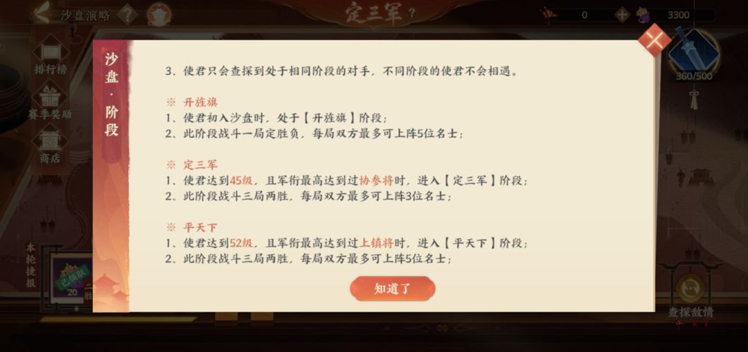 官方介绍的很清楚了,开旌旗就是自动战斗版金戈,定三军就是田忌赛马,平天下没玩过应该是三局两胜版金戈。