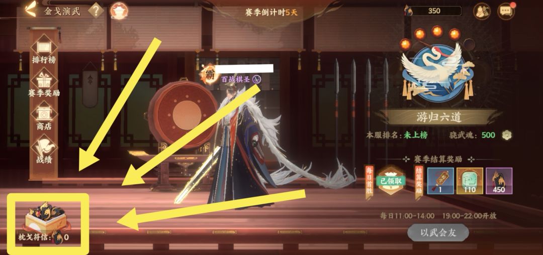 金戈演武即PVP模式(抢速互秒模式,很难打到第三回合),每天开放时间11∶00——14∶00,19∶00——22∶00。