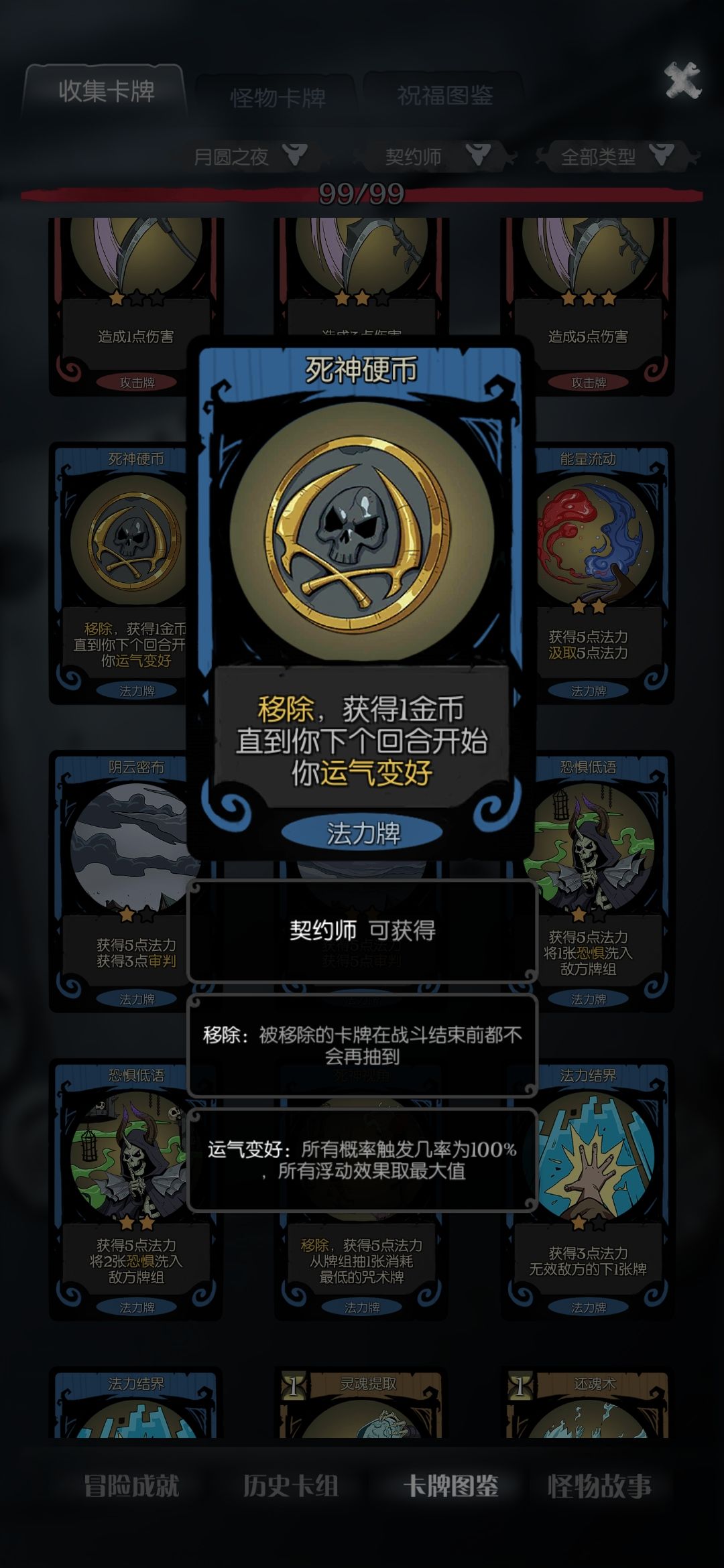 然后还要拿一张死神硬币的牌,因为死神硬币是一个回合内运气变好,用过之后会被移除的!!!
