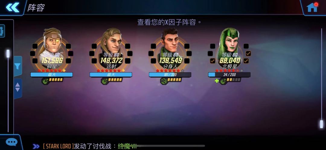 1.惊奇X战警:适合终魔、毁灭讨伐副本,在PVP和盟战(进攻、防守)中也有不错的表现。队伍主要打法为通过击杀弱小单位来获得快速拉条,再配合群体缓速,让对手无法行动从而进行成吨输出。