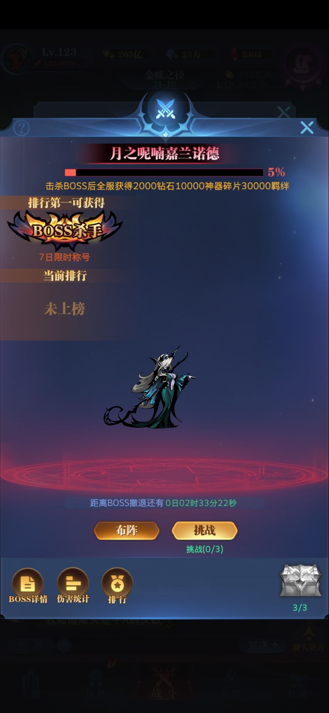 天启boss来袭虽然没打完,但是还是要在这里谢谢前面这几位大佬和认真换装备换阵型的朋友!希望下次咋们能够击杀