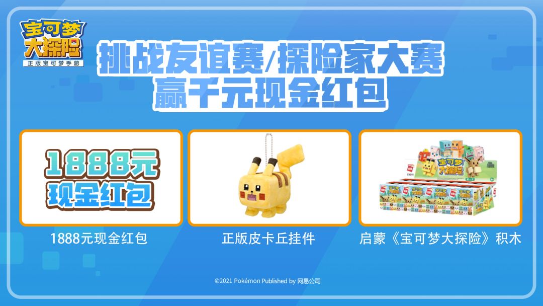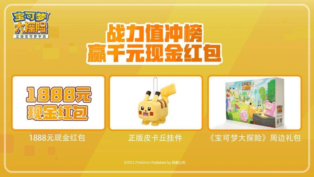 战力是衡量探险家综合实力的重要指标,友谊赛和探险家大赛则是探险家们相互切磋交流的平台,能够在榜单上排名前列的探险家自然都拥有十分强劲的实力。截止此次测试结束,排行榜榜首探险家将获得1888元现金红包奖励,位列战力榜第2至第10位、友谊赛或探险家大赛积分榜第2至第5位的探险家,均可获得正版皮卡丘挂件,战力超过10000,友谊赛或探险家大赛段位达到“传说”的探险家,则可加入幸运抽奖,有机会抽中精美周边奖励。