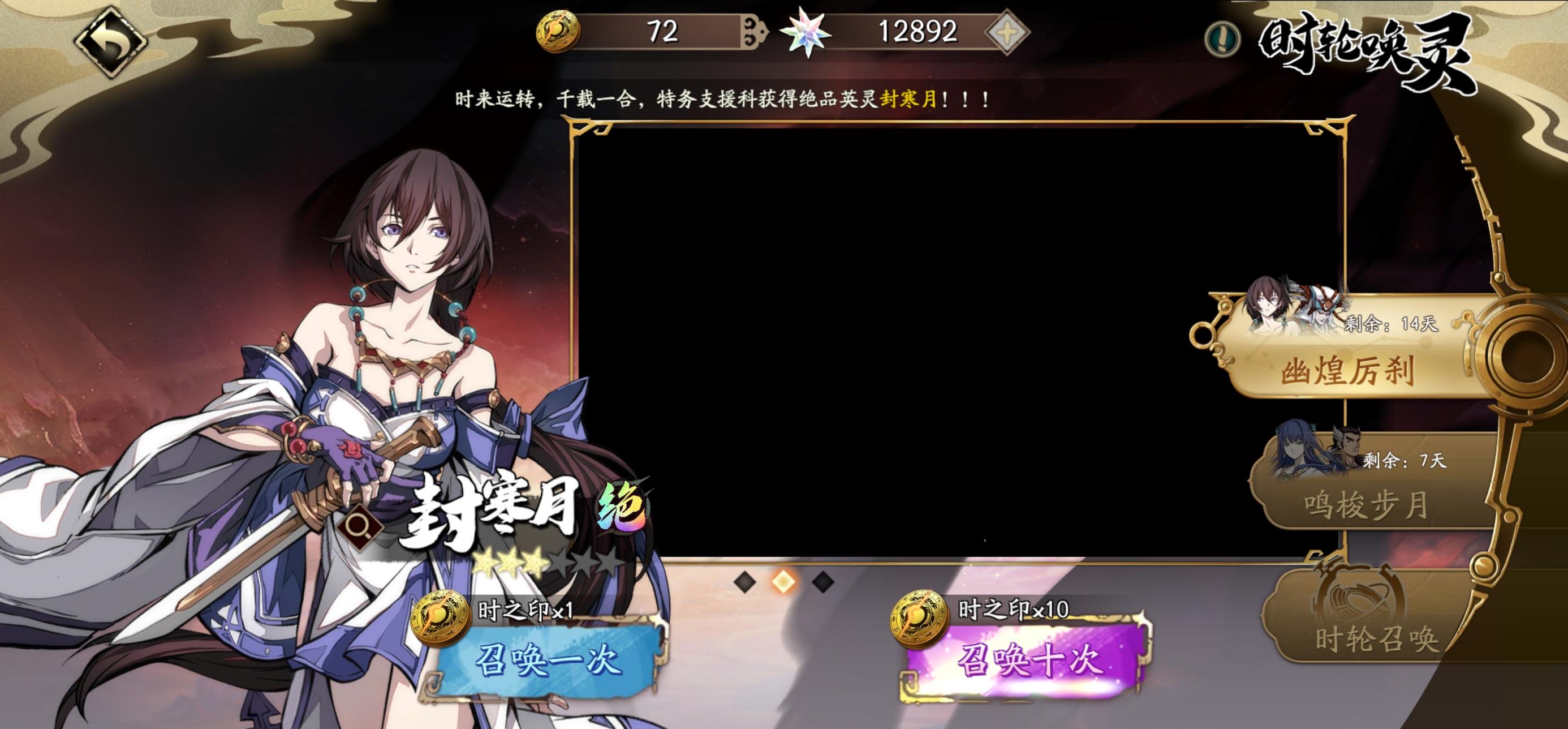 200多抽出了一个封妹一个璇玑星一个冥皇…太上头了,一次性把之前的债全还了…