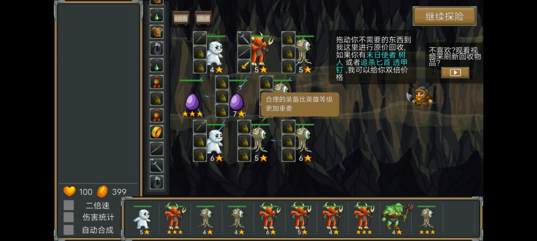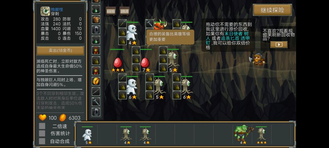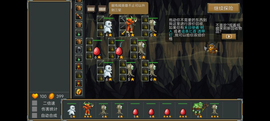 因为,1.08版本,多了一个复制。看广告可以复制二次。也就是比如6⭐的蚊子,价格是486。复制低一星,也就是五星蚊子,商店买,需要162价格,而用六星蚊子,复制五星蚊子,也是同样的162价格,没有涨价。。没有刷新的费用。。所以可以快速积累手下的星级!!