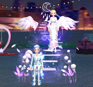 双人坐骑梦幻天梯整体呈紫色基调,沉浸在梦幻紫星空下盛景的美好,羽翼设计如梦亦如幻,巧妙浪漫,点点星光呈现星空光影璀璨效果,弯月引领着,走向爱情的水晶宫殿,相拥于爱情天梯,执子之手,与子偕老~