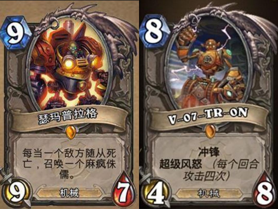 那么问题就来了,既然米米尔隆的组合体V-07-TR-ON这么高大上,为什么打不过一个自娱自乐的假国王瑟玛普拉格呢?这就很好奇炉石设计师是怎么想的了