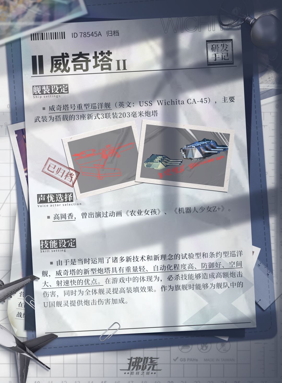 ——下面请指挥官们查收「威奇塔」的研发配方↓