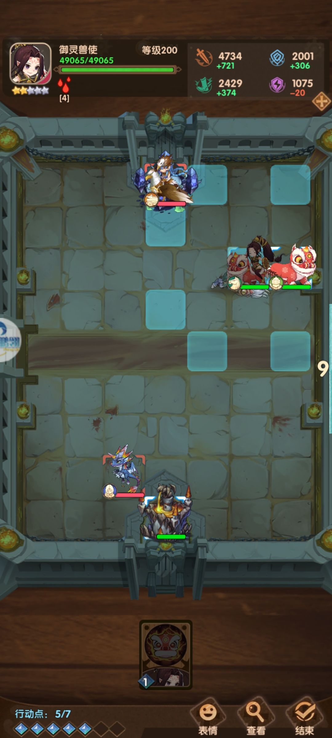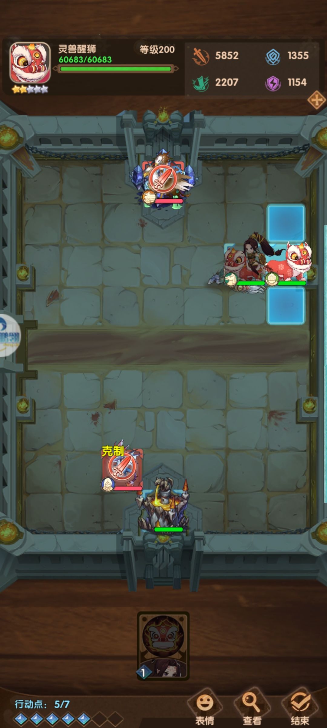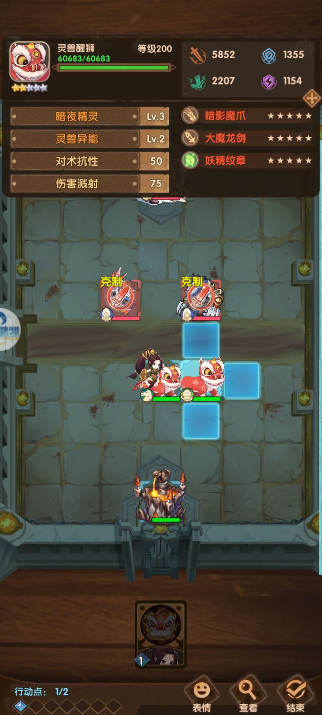 然后在没有吃人的时候直接放的狮子,属性值同样为5852-1355-2207-1154