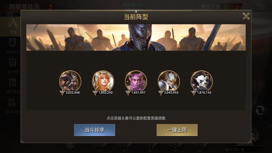 老区竞技场可以上阵5名英雄