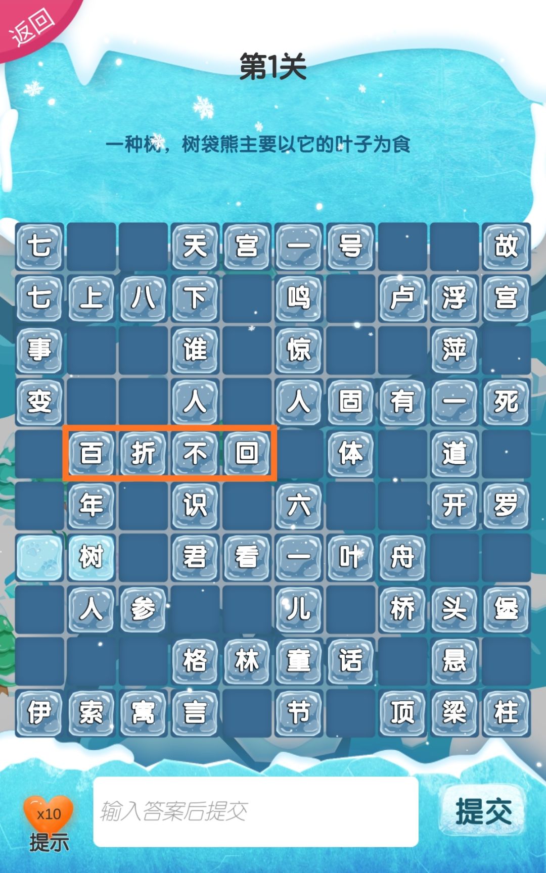 第一关的问题:百折不挠,百折不回,百折不摧都是一个意思诶,填那个都可以吧?