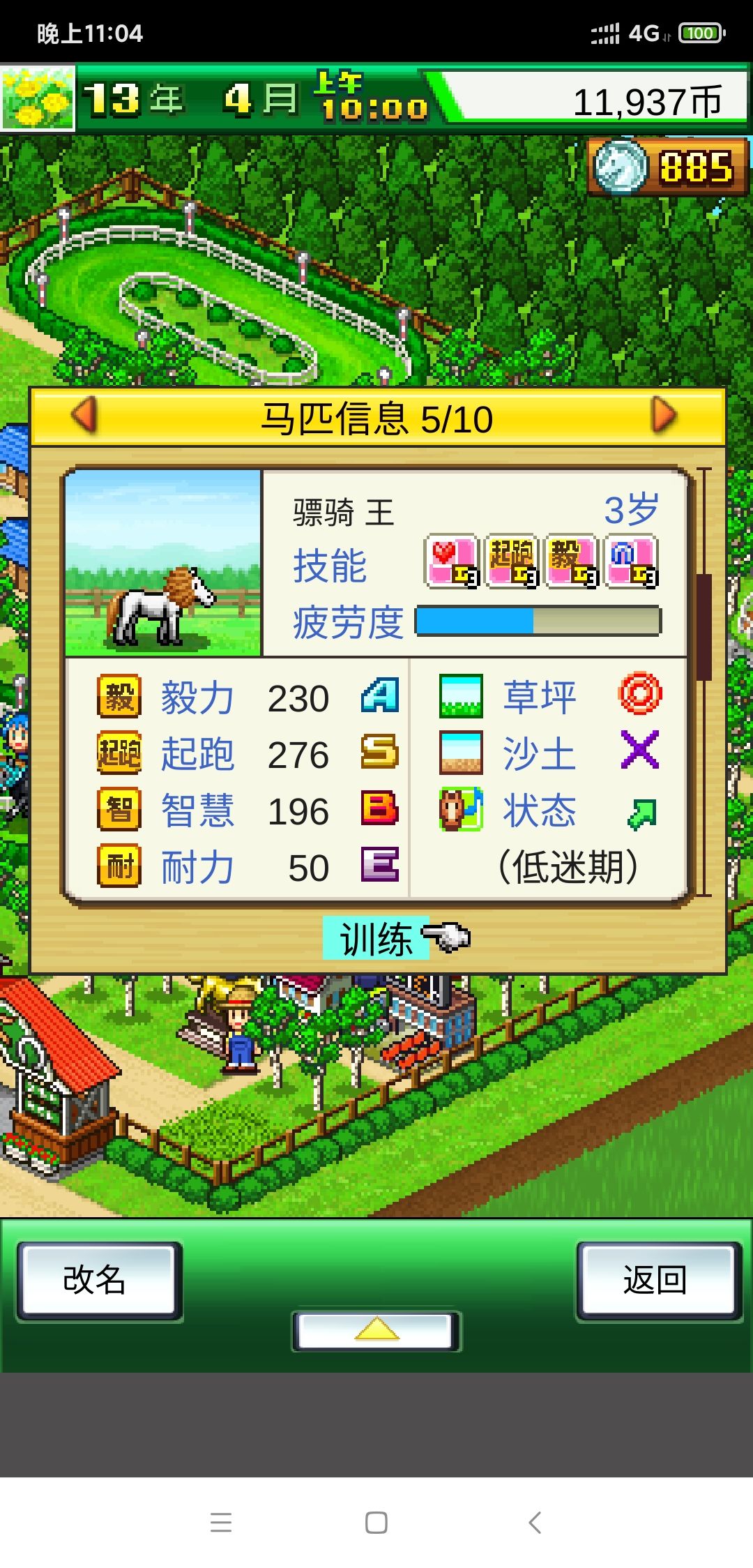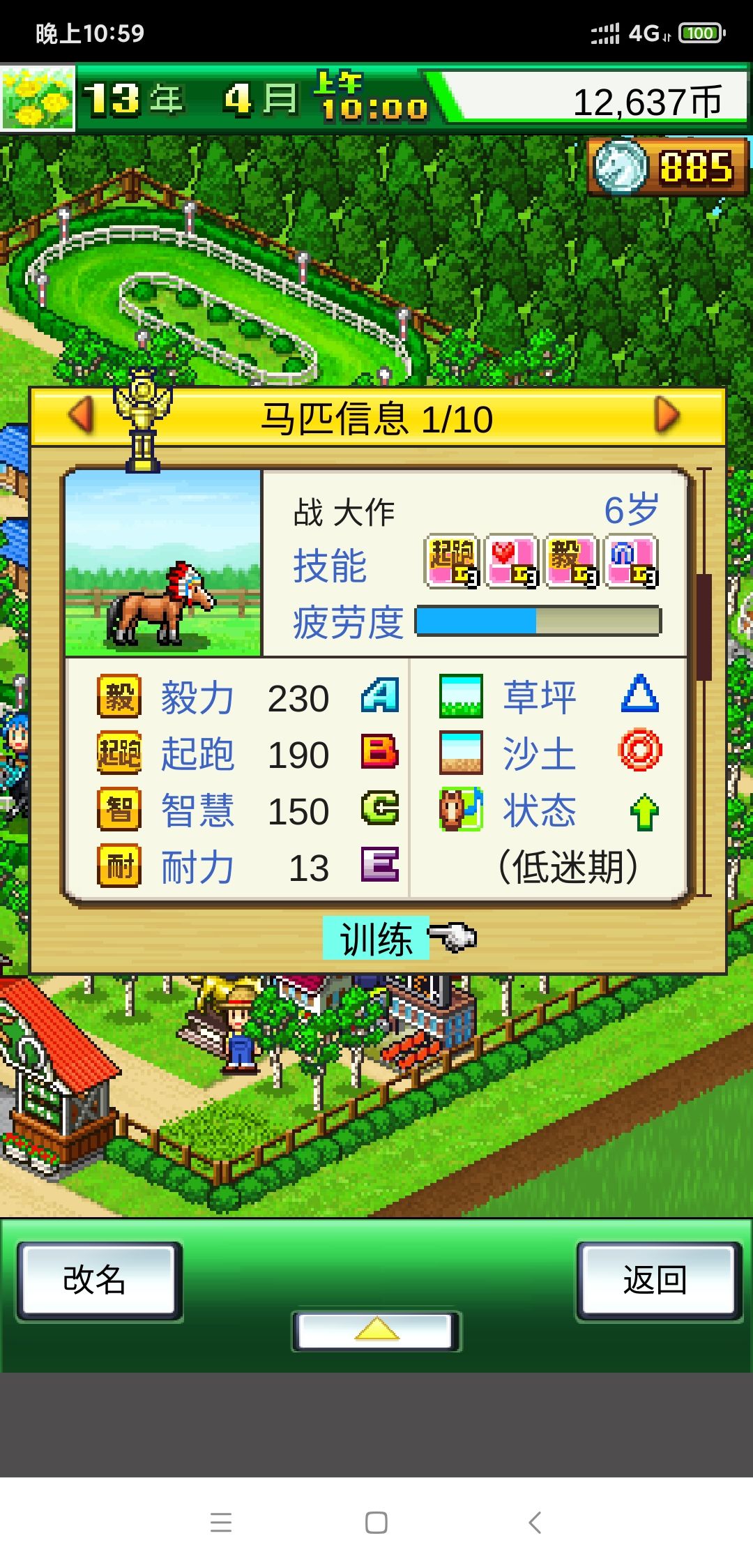 忘记开罗军是沙土跑道了GG,然后手头上就只有一个一代战斧属性最高了,没用道具就是属性养满然后状态拉满到上升跑道劲量靠里,我是2道赢的,1道应该更稳。
