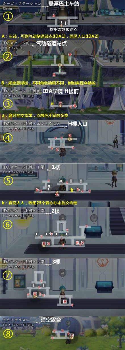 位置详见IDA学院地图中的マ,找齐后去H楼1楼最右边找夏克大人兑换道具:5个素材+1把圣诞树枪(攻击力5的装饰品,有些剧情拿着会很有喜感)