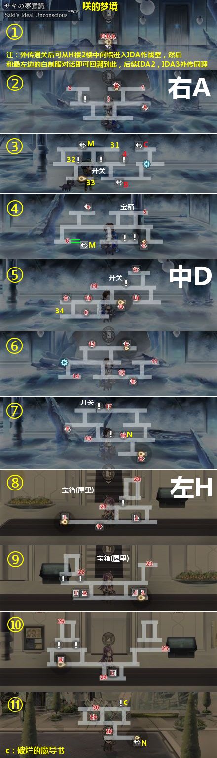 注:外传通关后可从IDA学院H楼2楼中间墙进入IDA作战室,和最左边的白制服对话即可回溯到咲的梦境,后续IDA2真由的梦境,IDA3希斯梅娜的梦境同样可在此处回溯。