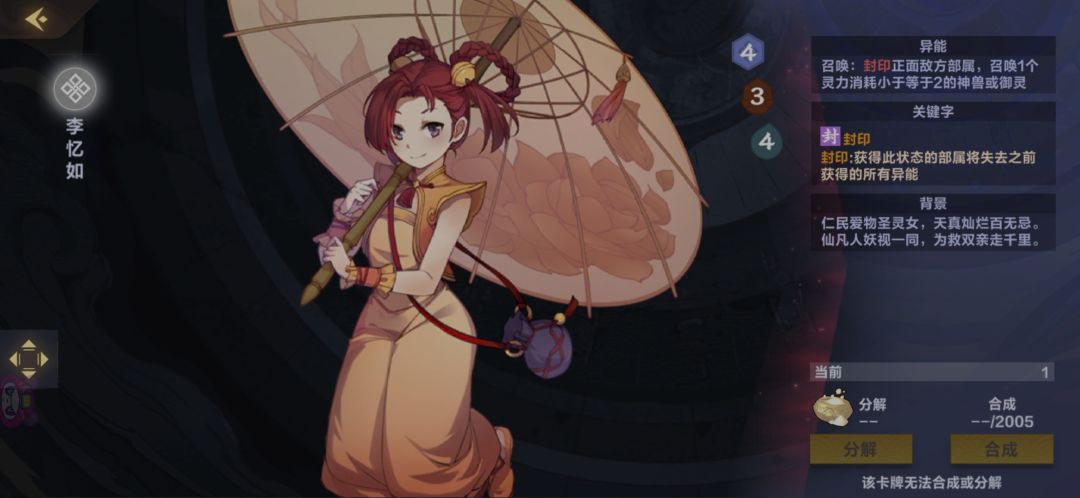 新李忆如,4费3/4封印,还特招一只2费的神兽。非常超模,很适合中期过渡,运气好召出2费1/3的那只灵属性的飞鸟,配合召唤灵剑直接起飞。
