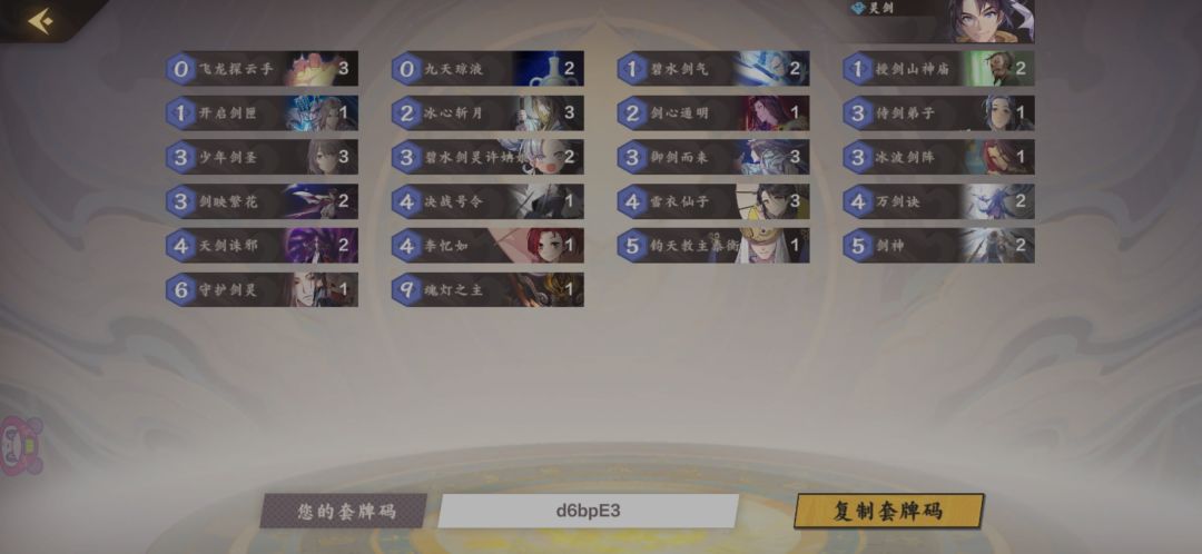 新卡包出了之后,我抽了三十抽,略微挑了几张卡微调了我的灵剑卡组,请各位大佬帮忙补充修改,如图所示: