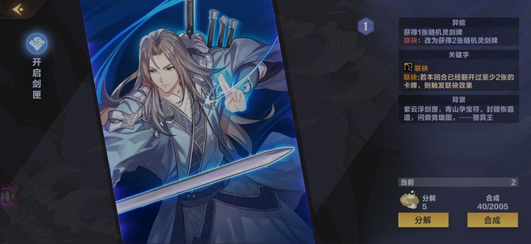 开启剑匣,1费灵剑的压缩包,这里放掉一张授剑带一张这个是为了获取主动位置的封印剑